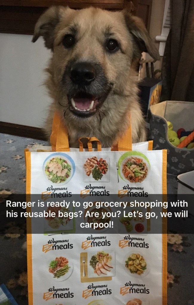 Ranger always is sure to bring his reusable shopping bag–he fills it with all things good…