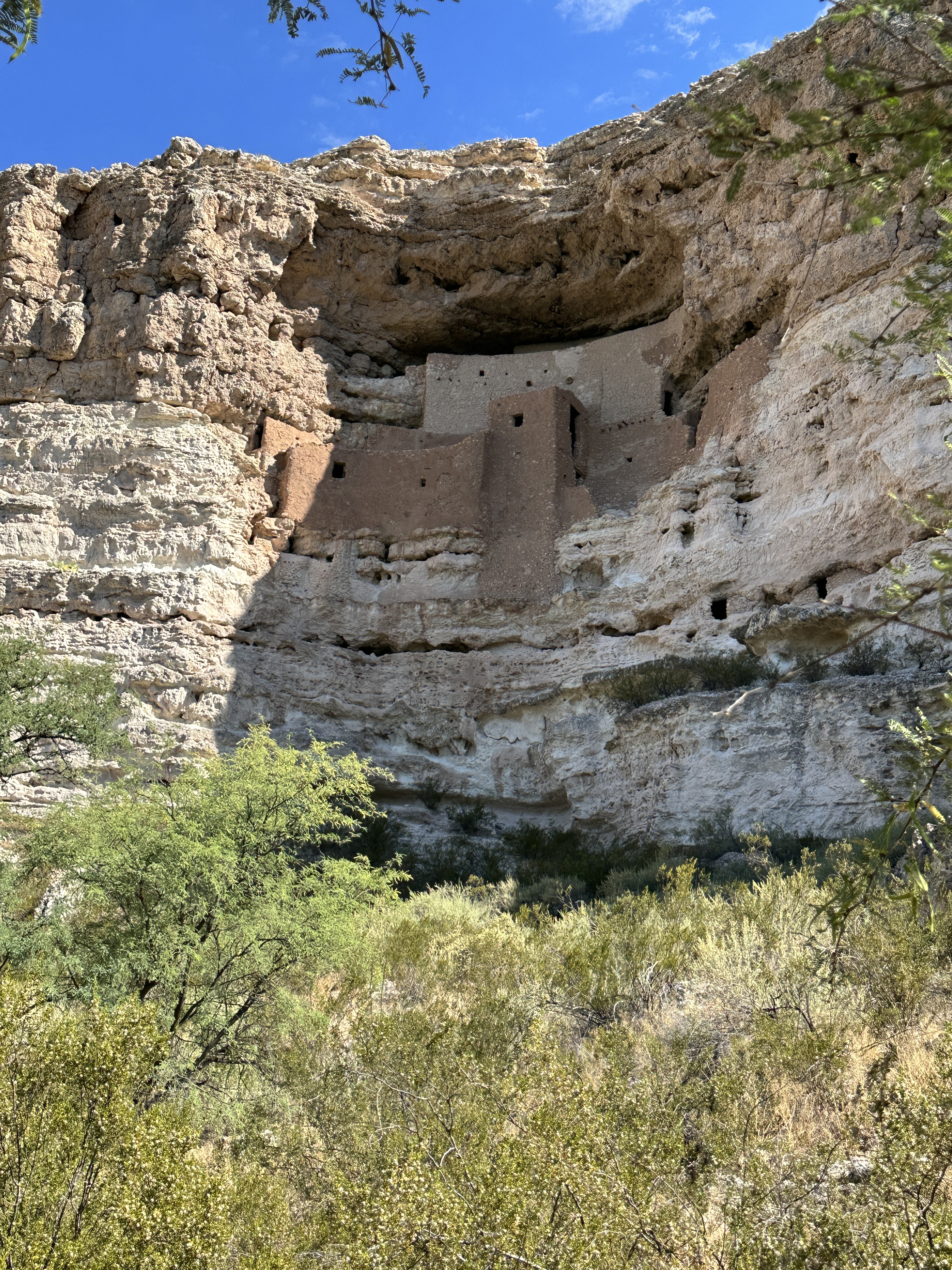 We took a trip to Montezuma’s Castle. Although it is called a castle, in reality in is an amazing 20 room pueblo “apartment” built into a limestone cliff by the Sinagua. The Sinagua occupied Verde Valley since about 1050. These dwellings had multiple levels, were made of natural materials, and accessed by ladders. How amazing is that? You stare in wonderment of how these dwellings were created and ponder who came up with this brilliant idea. Was it survival, hope for a safe dwelling, maybe an effort to make a community? The cliff dwellings stay cool in the summer and warm in the winter. Eventually the Sinagua abandoned these dwellings and went elsewhere. What might cause you to abandon your home? What parts of their homes did they take with them? What would you take?