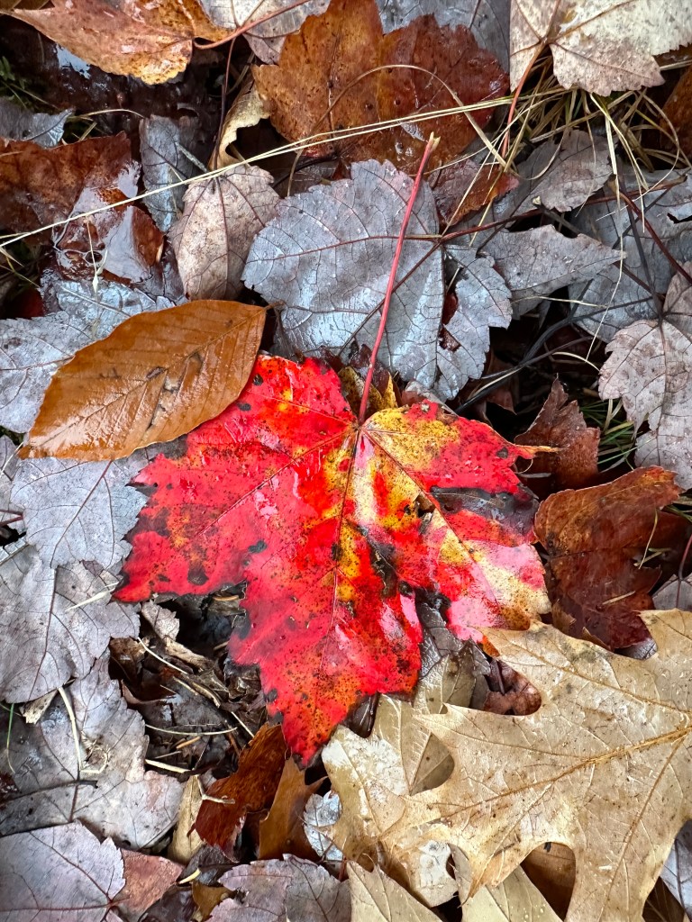 I love leaf litter. I love the colors, the crunchiness, the smell of decomposition, and the nutrients it provides to the forest floor. It’s like a little coat of insulation and protection for the forest floor against the upcoming change in season. Some leaves decompose faster than other leaves. Just look at this photo. Look at the diversity of leaf samples, the differences in color caused by sugars stored in the leaves. Think of the trapped moisture, the hiding spots for organisms, and the nutrients being recycled back into the earth.